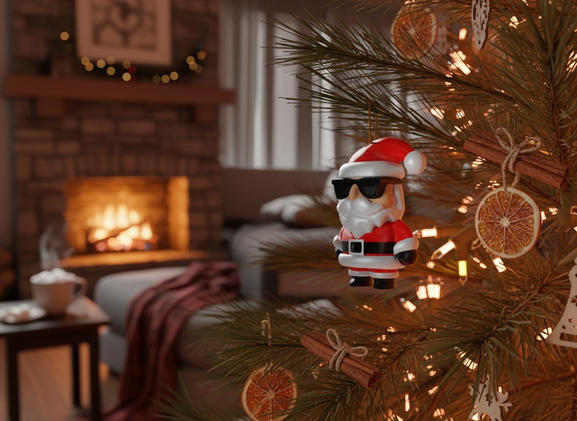 Meet the Slick Santa, a small ornament with plenty of personality. This tiny Santa figure features signature sunglasses for a fun, modern holiday vibe. Perfect for hanging on the tree or adding a bit of character to seasonal décor.